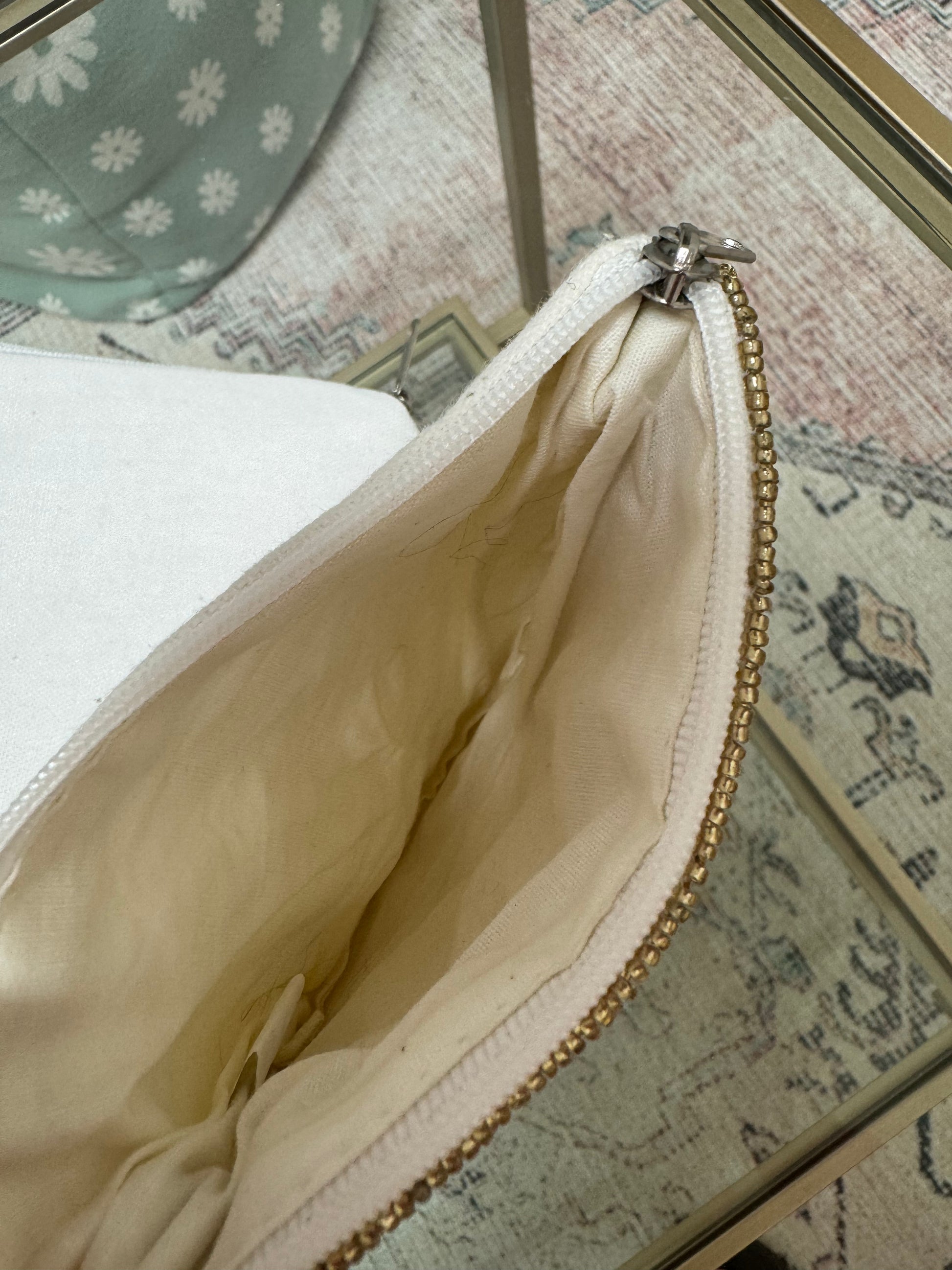 This beaded coin purse features intricate beadwork and is perfect for keeping loose change organized while on the go. It also makes for a thoughtful and stylish gift for bridesmaids.